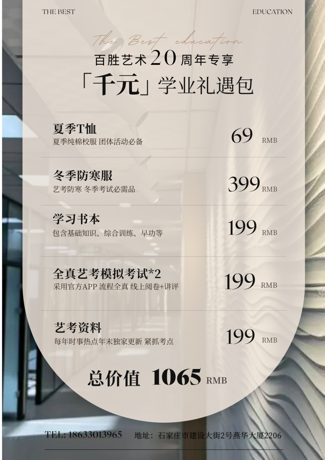 活动期间,凡已缴纳定金的同学,加 20 元即可尊享价值 1065 元学业礼遇大礼包,福利超值不容错过!
