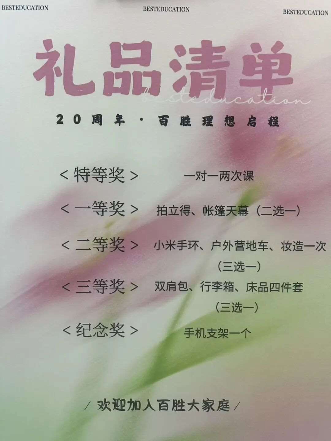 凡到校试听的小伙伴,交付定金即可参与「20 周年幸运抽奖」